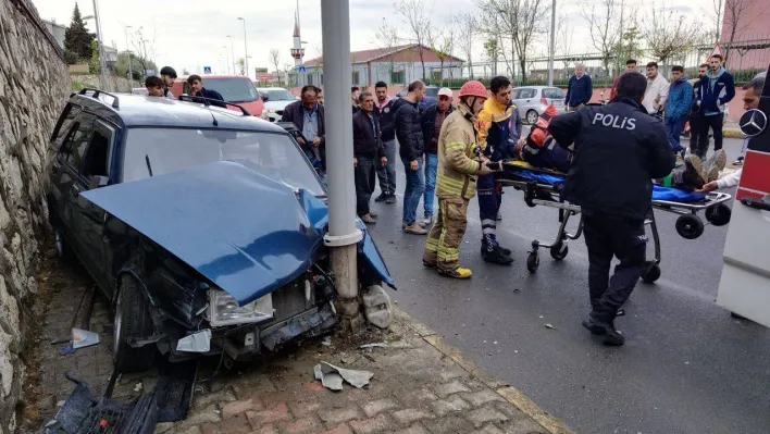 Selimpaşa'da sürücüsünün direksiyon hakimiyetini kaybeden özel otomobil duvar ile elektrik direği arasına sıkıştı. Kazada araç sürücüsü yaralandı.