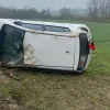 Kırklareli'nin Pınarhisar ilçesinde yağışlı havanın etkisiyle meydana gelen trafik kazasında, sürücüsünün kontrolünden çıkan otomobil tarlaya savruldu.
