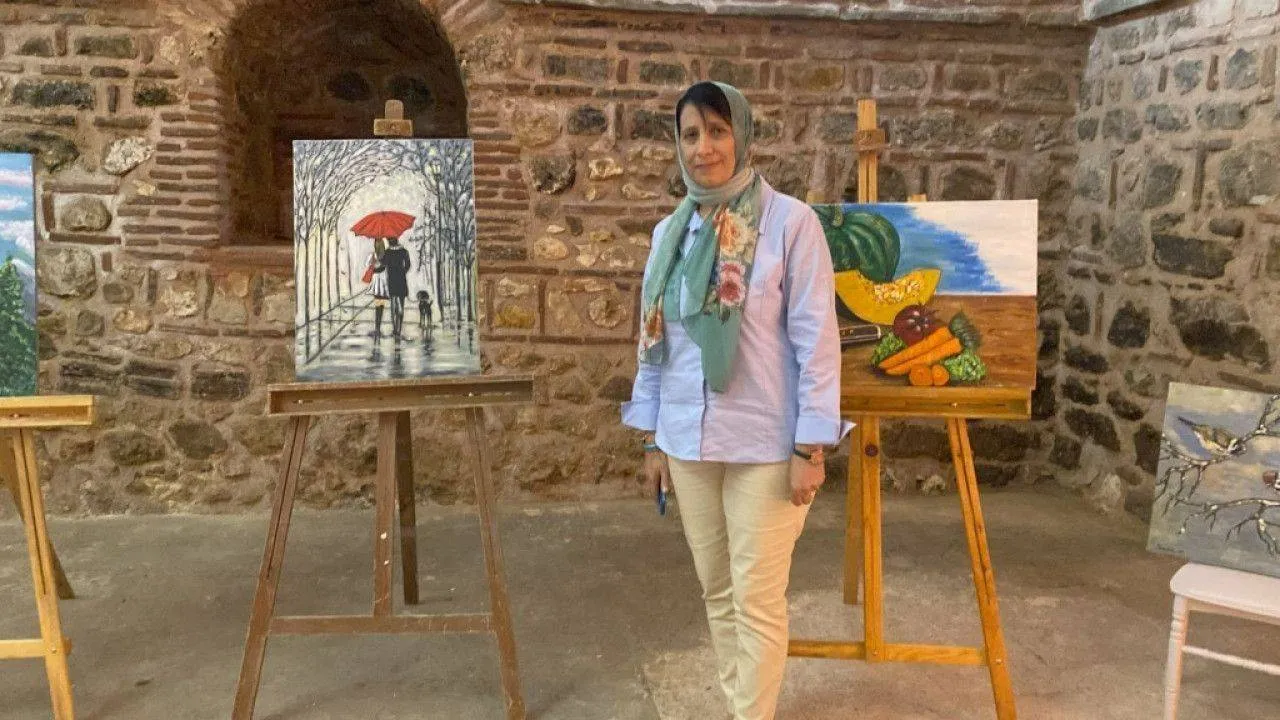 Bilecik’in Gölpazarı ilçesinde yağlı boya resimleri tarihi Taşhan binasında sergilenirken, sergiye büyük ilgi oldu.