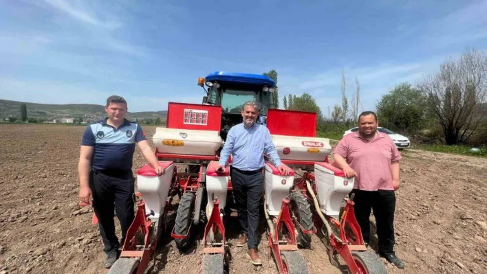 Bilecik'in Gölpazarı ilçesinde yağlık ayçiçeği ekimi gerçekleştirildi.