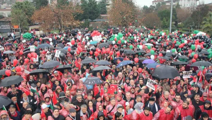Kocaeli'de yüzlerce kişi yağmura aldırış etmeden Filistin'e destek yürüyüşü düzenledi. 7'den 70'e tek yürek olan vatandaşlar sloganlar eşliğinde İsrail'i protesto etti.