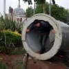 Yağmurdan kaçmak için su künküne saklandı
