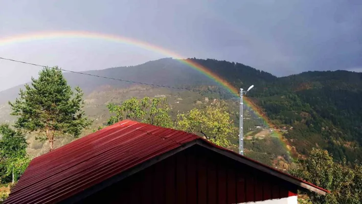 Sakarya'da yağmur sonrası ortaya çıkan gökkuşağı görsel şölen oluşturdu.