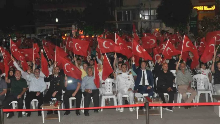 Programda saatler 00.13’ü gösterdiğinde ilçedeki tüm camilerden Sala okundu. Vatandaşlar, alana kurulan dev ekrandan ülke genelinde gerçekleştirilen anma programlarını takip etti.