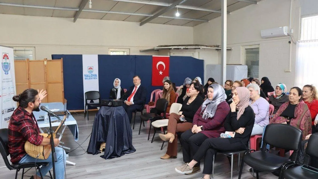 Gaziosmanpaşa Mahallesi’nde bulunan YASMEK’te gerçekleştirilen seminere kursiyerler ve vatandaşlar dinleyici olarak katıldı. Gerçekleştirilen seminere Sosyal Hizmet Bölümü Öğretim Görevlisi Metin Öksüz ile birlikte Yalova Üniversitesi öğrencileri de katılım sağladı. Seminer sonrası sanatçı Bayram Ali Ugip katılımcılara mini bir konser verdi.