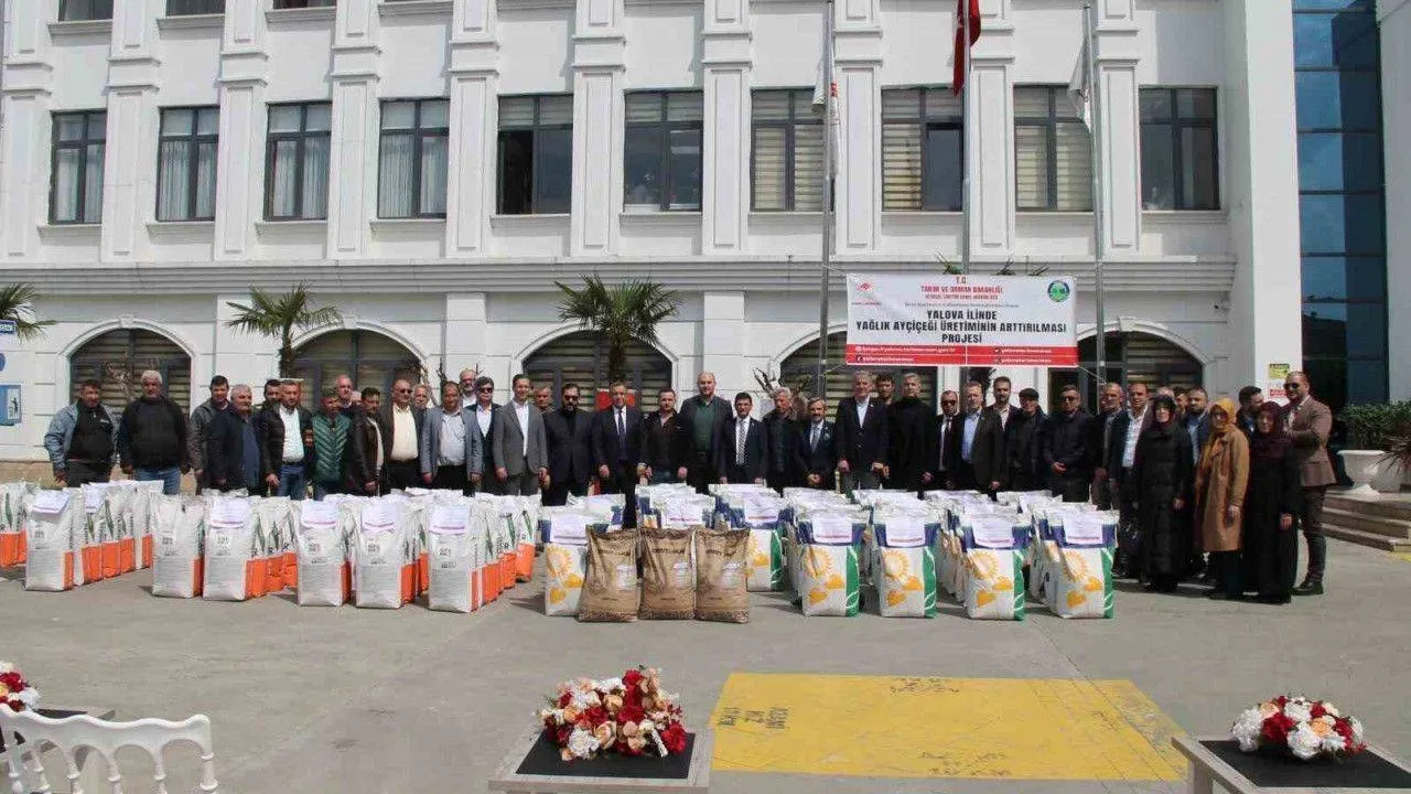 Yalova İlinde Yağlık Ayçiçeği Üretiminin Arttırılması Projesi çerçevesinde çiftçilere 2 bin 500 dekar alanda kullanılmak üzere tohum dağıtımı yapıldı.