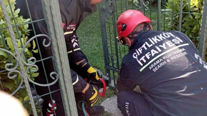 YALOVA (İHA) – Yalova'nın Çiftlikköy ilçesinde bir binanın bahçe kapısı demirlerine sıkışan kirpi itfaiye ekipleri tarafından kurtarıldı.