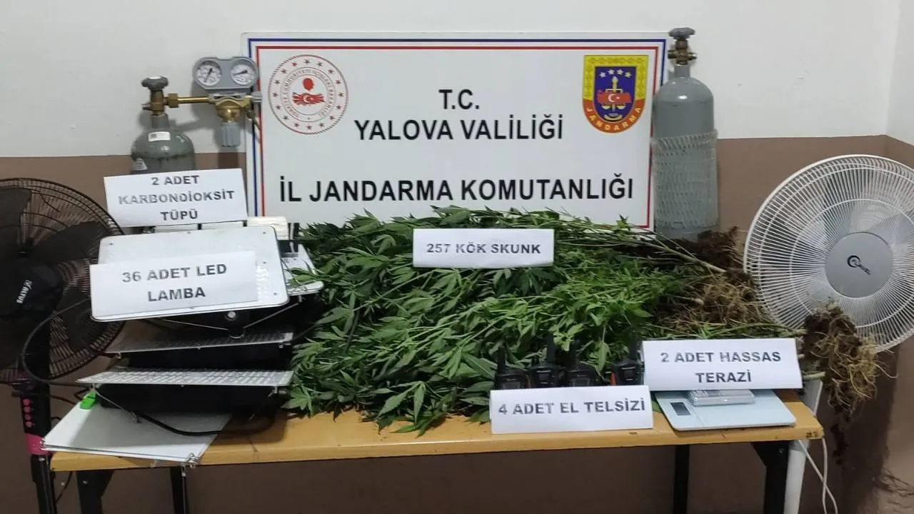 Yalova İl Jandarma Komutanlığı tarafından düzenlenen operasyonda, 2 katlı evin bodrum katına özel iklimlendirme sistemi kurarak uyuşturucu yetiştirdiği ileri sürülen 4 kişiden 2'si tutuklanarak cezaevine gönderildi.