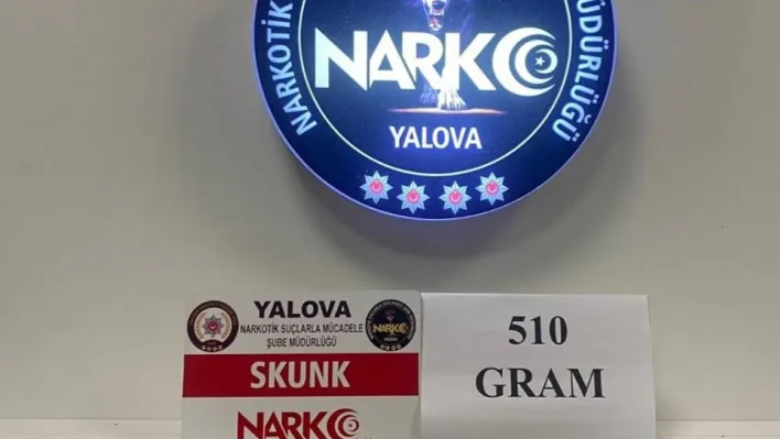 Öte yandan, polisin diğer bir çalışmasında ise İstanbul’dan temin edilen uyuşturucu maddeleri Yalova üzerinden çevre illere sevk ettiği tespit edilen 10 plakalı araç takibe alındı. Yalova-İzmit kara yolu Altınova ilçesi mevkiinde araç durdurularak arama gerçekleştirildi. Aramda 510 gram skunk ele geçirildi.