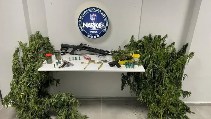 Alınan bilgiye göre, Yalova İl Emniyet Müdürlüğü Narkotik Suçlarla Mücadele Şube Müdürlüğü Narkotim ekipleri, Armutlu ilçesinde uyuşturucu üreterek ticaretini yaptığı ileri sürülen şüphelilere yönelik operasyon düzenlendi. Operasyonda S.Ö. ve D.K. gözaltına alınırken, 1 kilo 243 gram esrar, 7 kök Hint keneviri bitkisi, otomatik tüfek, 2 tabanca ve 105 fişek ele geçirildi.