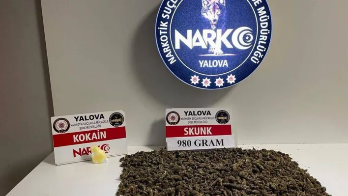 Alınan bilgiye göre, Narkotik Suçlarla Mücadele Şube Müdürlüğü Narkotim ekipleri, İstanbul’dan temin ettikleri uyuşturucuları Yalova’da sokak satıcılarına ulaştırarak satış yaptığı ve yaptırdığı tespit edilen zanlıyı takibe aldı. Operasyon düğmesine basan ekipler 34 plakalı otomobili durdurarak içindeki şüpheli Ş.’A’yı gözaltına aldı. Narkotik maddeler arama köpeği Zeytin eşliğinde araçta yapılan aramada, 980 gram skunk ve 52 gram kokain ele geçirildi.