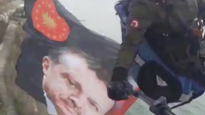 Yamaç paraşütçüsü Cumhurbaşkanı Erdoğan sevgisini gökyüzüne taşıdı