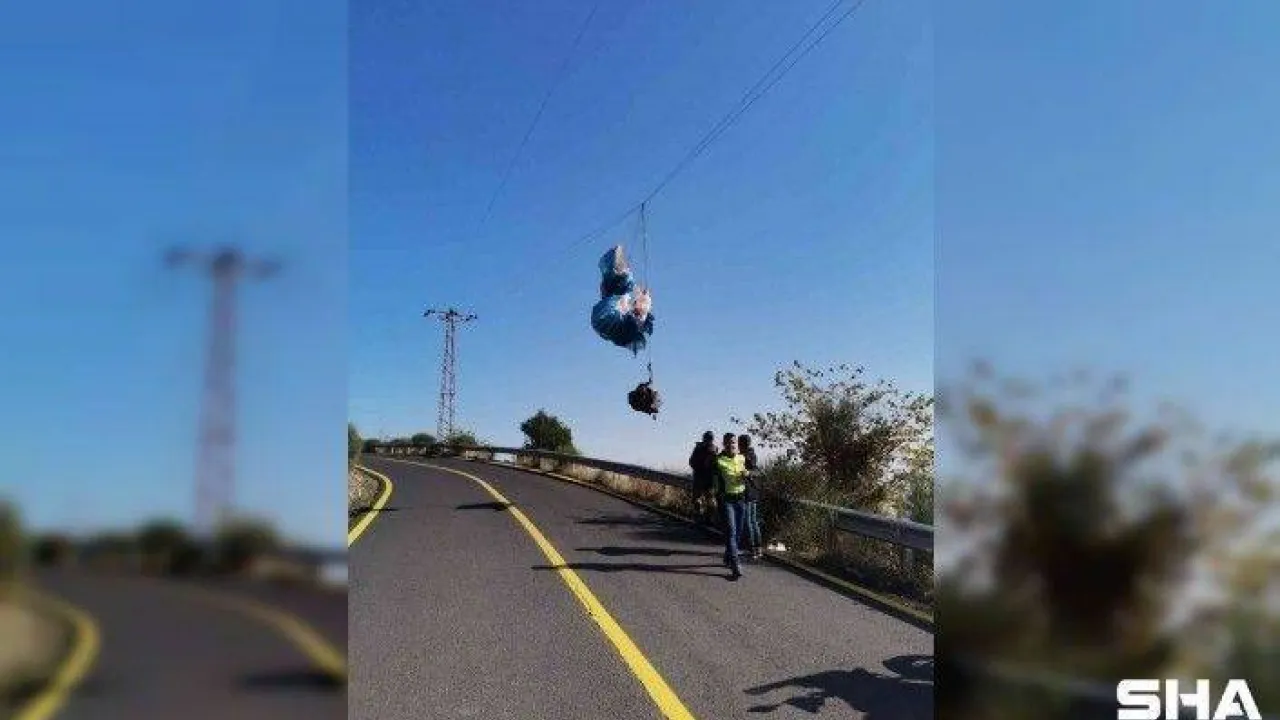 TREDAŞ ekipleri de bölgeye gelerek, gerekli önlemleri aldıktan sonra tellere takılan paraşütü çıkarttı.