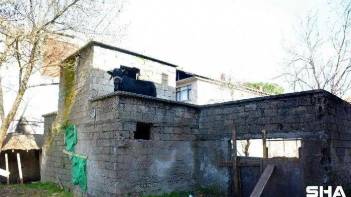 Kocaeli'de daha önce de birkaç kez bulunduğu ahırın üst katına çıkan 'Kömür' isimli tosun yine durmadı. Bir daha çıkmaması için konulan engelleri boynuzuyla aşan tosun, yine çıktığı üst katta mahsur kaldı. İtfaiye ekiplerine de zorluk çıkaran yaramaz tosun, tarakla tüyleri taranınca sakinleşti.