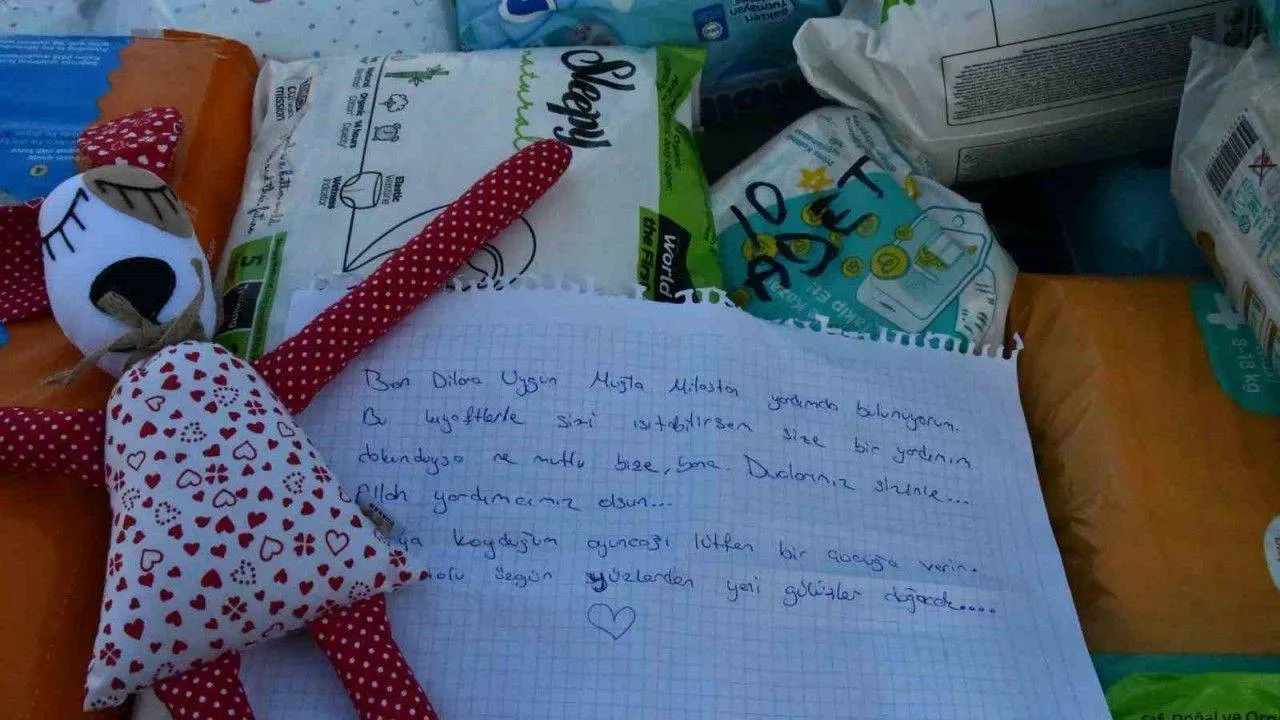 Kahramanmaraş depremlerinin etkilediği bölgeye yardımların toplanılması için Muğla Milas Gençlik Merkezi’nde oluşturulan Milas Afet ve Acil Durum Yönetim Merkezi’nde ulaştırılan bazı koliler içerisinden çıkan notlar okuyanları duygulandırdı.