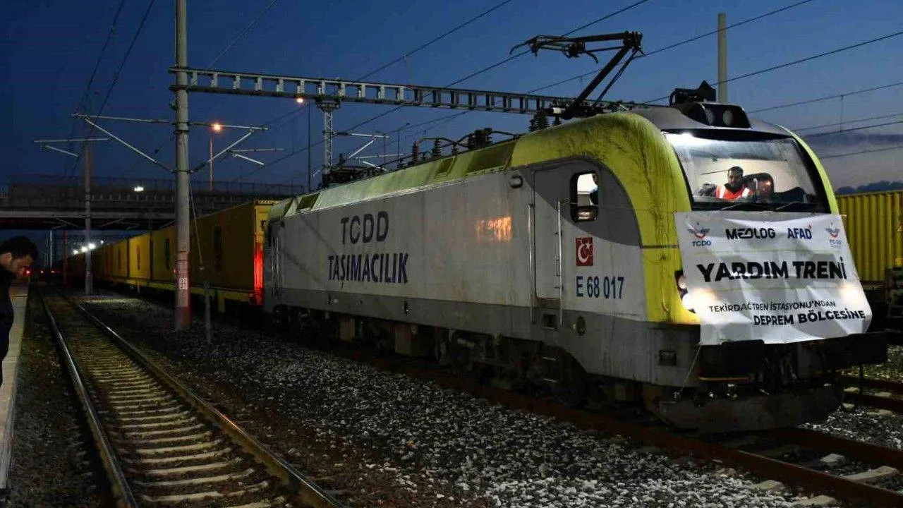 Tekirdağ’dan deprem bölgesine gönderilen yardım tırlarının yanı sıra 18 konteynerlik tren de bölgeye hareket etti. Karayolu, denizyolu ve havayolundan sonra demiryolundan da depremzedelere yardım gitmeye başladı.