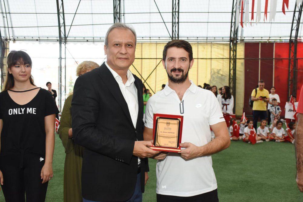 Silivri Kaymakamı Ali Partal ise konuşmasında şunları ifade etti: “Bugün spor okullarımızın açılışındaki heyecanı kapanışta da görüyorum. Öğrencilerimizle çocuklarımızla gurur duyuyorum. Bu yaz okullarında bir çok sporcu yetiştirdik ve bir çoğu hem bölge hem il hem Türkiye çapında derecelere sahip oldular. Ne kadar gurur duysak azdır. Sporcular; çalışkan, disiplinli ve düzenli olurlar. Biz bu çalışkanlığı, düzeni, disiplini 9 Eylül’de açılacak eğitim- öğretim başlangıcından itibaren okullarımızda da istiyoruz. Sporu ne kadar seviyorlarsa, derslere de o kadar çalışacaklar. Ben özellikle en büyük katkıyı sağlayan Silivri Belediye Başkanımıza, İlçe Spor Müdürlüğümüze, İlçe Milli Eğitim Müdürlüğümüze, Halk Eğitim Merkezi Müdürlüğümüze ve emeği geçen tüm antrenör ve usta öğreticilerimize birer birer teşekkür ediyorum. Spor biraz sorumluluk ve sabır gerektirir. Velilerimizin de bu yaştaki çocuklarımızın gelişimlerine katkı sağlayabilmesi için haftada 3, 4 gün süren antrenmanlara karşı sabırlı olması gerekli. Sporla olan ilişkilerini bozmayalım, sabrımızı bu konuda da gösterelim istiyorum.” Konuşmaların ardından Kaymakam Partal, Başkan Yılmaz ve protokol üyeleri antrenörlerin şiltlerini takdim etti. Program öğrencilerin de katıldığı büyük fotoğraf karesinin çektirilmesi ile tamamlandı.