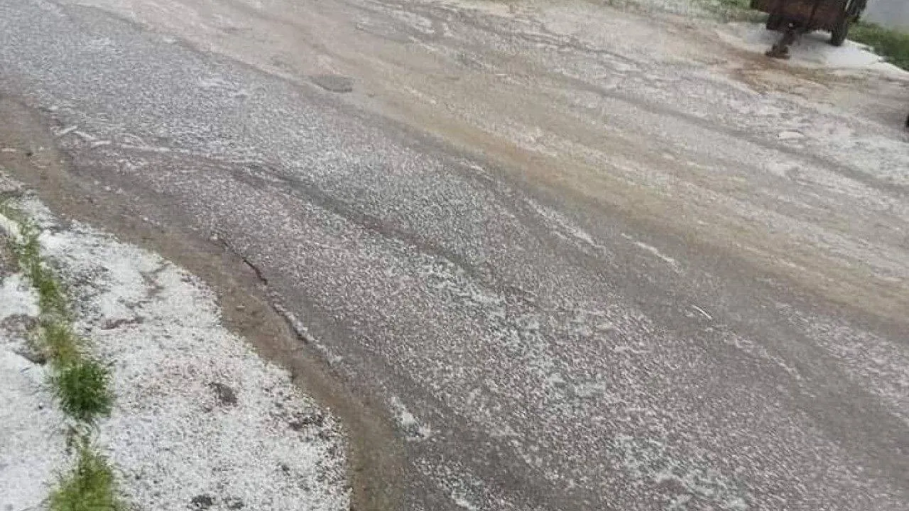 Çanakkale'nin Yenice ilçesinde etkili olan dolu yağışı yerleri beyaza bürüdü.