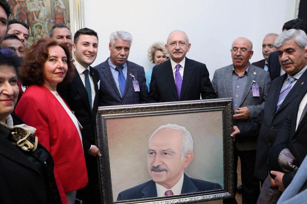 Silivri CHP heyeti görüşme sırasında genel başkan Kılıçdaroğlu'na özel olarak hazırlanan yağlı boya tablosunu hediye etti.