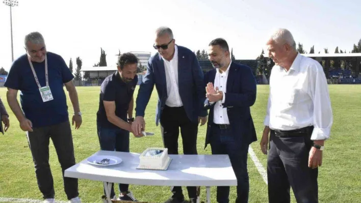 Teco Karacabey Belediyespor ile Adıyamanspor maçı öncesi, sahaya getirilen doğum günü pastasını birlikte kesen Teknik Direktör Recep Çetin ve Belediye Başkanı Ali Özkan, TECO Karacabey Belediyespor Yönetim Kurulu Başkanı Sarp Yalçınkaya, yönetim kurulu ve taraftara teşekkür etti.