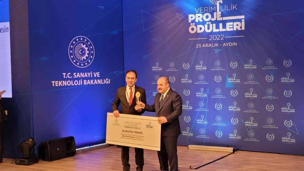Törenin açılış konuşmalarının ardından Bakan Varank, dereceye giren işletmelere ödüllerini verdi. Organizasyonda, Almaxtex Tekstil San. ve Tic. A.Ş. enerji verimliliği kategorisinde birincilik ödülünün sahibi oldu. Almaxtex Tekstil Makine Enerji Müdürü İbrahim Sezgin, ödülü Sanayi ve Teknoloji Bakanı Mustafa Varank’ın elinden aldı. Törende; Almaxtex Tekstil Boyahane Elektrik Bakım Şefi Erkan Aydın, Elektrik-Elektronik Bakım Şefi Yalçın Tekcan ve Kumaş Operasyonel Mükemmellik Grup Lideri Cansu Yılmaz da hazır bulundu.