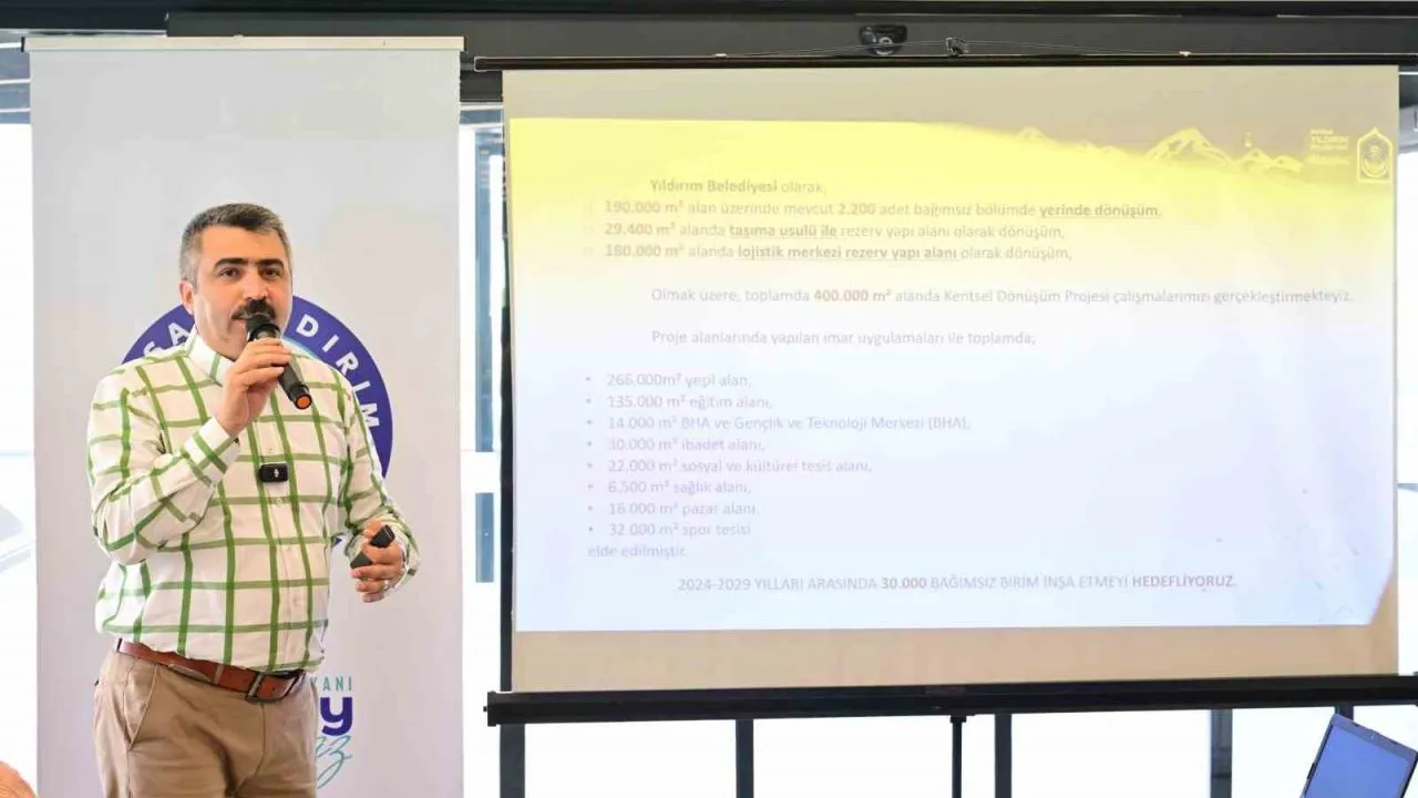 Yıldırım Belediye Başkanı Oktay Yılmaz, İnşaat Müteahhitleri Sanayici ve İş İnsanları Derneği (İMSİAD) üyeleriyle bir araya geldi. Kaplıkaya Cazibe Merkezi’nde düzenlenen ve İMSİAD Başkanı Şeref Demir ile dernek üyelerinin katıldığı toplantıda kentsel dönüşüm masaya yatırıldı. Dernek üyelerine ilçede yürütülen dönüşüm çalışmalarıyla ilgili bir sunum yapan Yıldırım Belediye Başkanı Oktay Yılmaz, kentsel dönüşüme çok yönlü baktıklarını vurgulayarak, "Biz sadece binaları değil, şehri iyileştiriyoruz. İşimiz sadece yıkıp yapmak değil. Biz dairesel bir dönüşüm yapmıyoruz. Biz, yeni bulvarlar, yeşil alanlar, parklar, sosyal donatı alanları yaparak kentin tamamını dönüştürüyoruz. Bunu yaparken ekonomik olarak bu projelerin bazılarından zarar ediyoruz. Ancak şehir kazanıyor. Bizim derdimizi para kazanmak değil. Bizim derdimiz yeni meydanlar, yeni spor tesisleri, yeni ulaşım aksları kazanmak. Hamdolsun bu konuda da güzel sonuçlar elde ediyoruz" dedi.