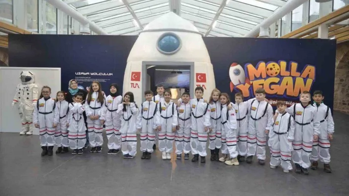 Molla Yegân Çocuk Üniversitesi’ne gelen yüzlerce çocuk, astronomi ve uzay bilimleri alanında temel eğitim alıyor. Matematik, astronomi, resim, fen bilimleri, robotik kodlama, felsefe ve drama dâhil olmak üzere 11 atölye 18 branşta eğitim veren Molla Yegân Çocuk Üniversitesi’nde eğitimler tüm hızıyla devam ederken uzaya yolculuk eğitimi için okul ziyaretleri başladı. Yıldırım İlkokulu 4’üncü sınıf öğrencilerinin ziyareti ile başlayan programlarda, çocuklar önce astronot kıyafeti giyiyor, sonrasında roket modelin içinden geçerek uluslararası uzay istasyonu modülünde bir astronotun 24 saatini gözlemleyebilme imkânı buluyor. Sergi alanındaki karadeliklerin oluşumu, manyetik alanın doğası, gezegenlerin sesi, gece gündüz oluşumu, güneş sistemi ve evrendeki büyüklükleri, büyük patlama gibi bilgileri onlara özel dizayn edilmiş düzenekler ve donanımlar eşliğinde öğrenen uzay meraklıları son olarak dijital gösterim alanında izledikleri film sonrası sen evrensin uygulamasında yaptıkları roket ve astronot resimlerinin dev ekranda hareketli halini görüyor. Yaklaşık 2 saat süren uzay macerası sonunda astronotluğa merak salan çocuklar, verilen eğitimler için belediye ekiplerine teşekkür etti.