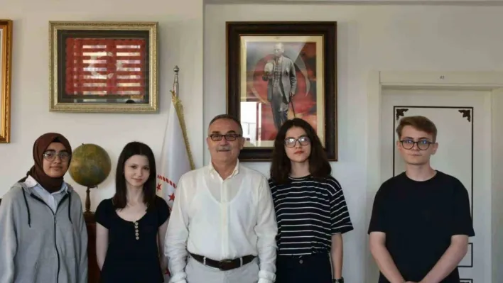 YKS'de dereceye giren öğrencileri makamında ağırladı