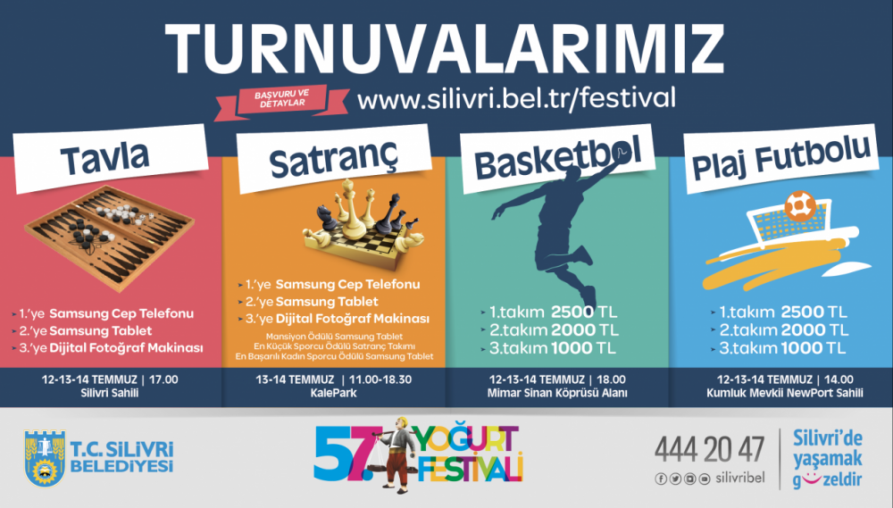 Silivri Belediyesi 57. Yoğurt Festivali başlıyor. 12-13-14 Temmuz tarihlerinde gerçekleşecek festival bu sene de turnuvalar, yarışmalar, dans gösterileri, konserler ve çeşitli etkinliklerle dopdolu geçecek.