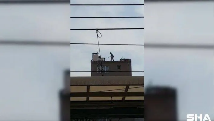 Olay Yıldırım Gökdere Mahallesinde meydana geldi. Çatı tamiratı yapan iki kişi, bellerine bağladıkları halatla çatıda adeta ölüme meydan okudu. Çatıda kimi zaman yatarak, kimi zaman da tehlikeli şekilde yürüyerek tamir yapan şahısları yoldan geçenler korku dolu gözlerle izledi. Uzun süre çatıda tamir işlemine devam eden iki şahıstan biri çatının en uç noktasına kadar geldikçe yürekler ağızlara geldi. O ânlar ise cep telefonu kamerasıyla kaydedildi.
