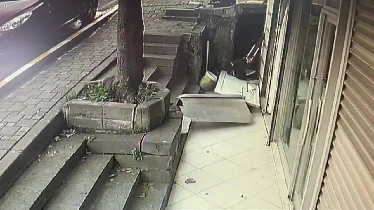 Öte yandan kaza anı ve sonrasında yaşananlar güvenlik kamerasına yansıdı. Görüntülerde çocukların kullandığı bisiklet demir kapıya çarpıyor ve bina boşluğuna düşüyor. Bir çocuğun kapıya çarpıp bina bahçesi önünde kaldığı, diğer çocuğun ise bisikletle beraber bina boşluğuna düştüğü görülüyor. Sonrasında ise vatandaşların olay yerine panik içerisinde geldiği, yaralı çocuğun sedyeyle götürüldüğü ve olay yeri inceleme ekiplerinin çalışma yaptıkları görülüyor.