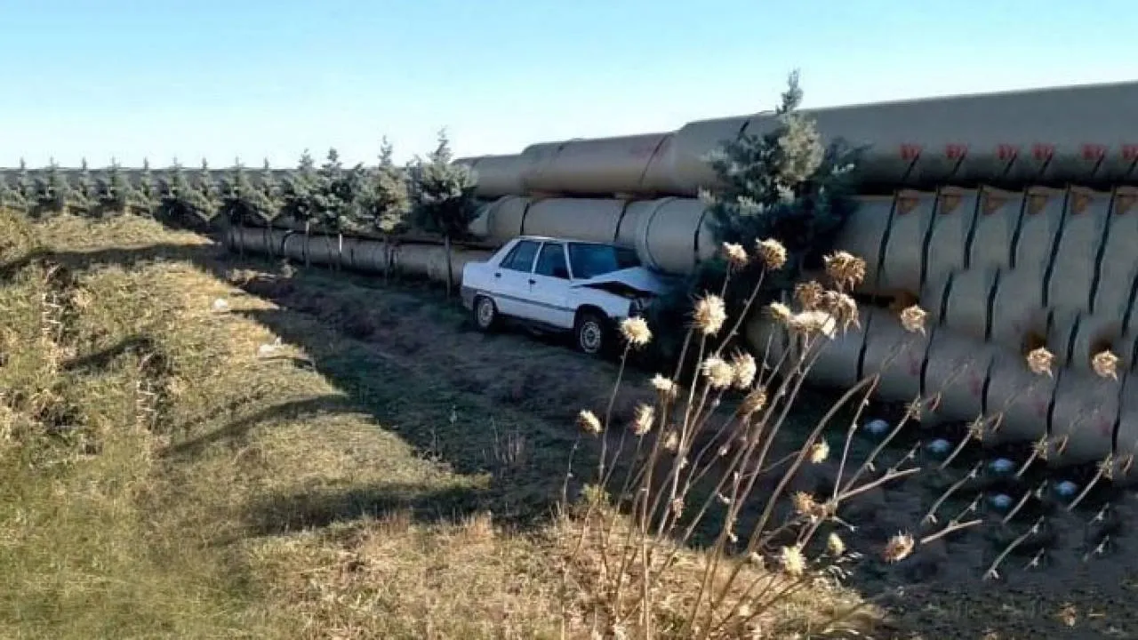 Yoldan çıkan otomobil borulara çarptı: 1 yaralı