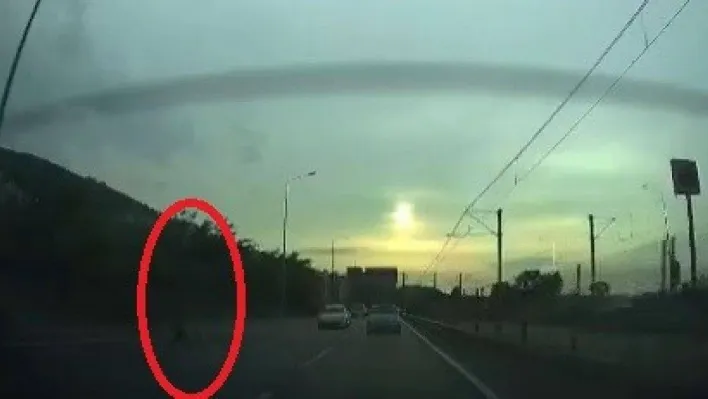 Bursa'da bir şahıs anayolda seyir halinde giden araçlara rağmen koşarak karşıya geçmeye çalıştı. O esnada süratle ilerleyen otomobil sürücüsü, çarptığı yayı metrelerce sürükledi. O anlar başka bir otomobilin araç içi kamerasına anbean yansıdı.
