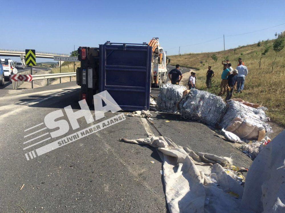 Kazada yaralanan kamyon şoförü Çerkezköy Devlet Hastanesi’ne kaldırılırken, kamyon yaklaşık 1 saatlik çalışmanın ardından yoldan kaldırıldı. Çerkezköy’den İstanbul yönüne seyir eden geri dönüşüm kamyonu Değirmenköy kavşağında devrildi.
