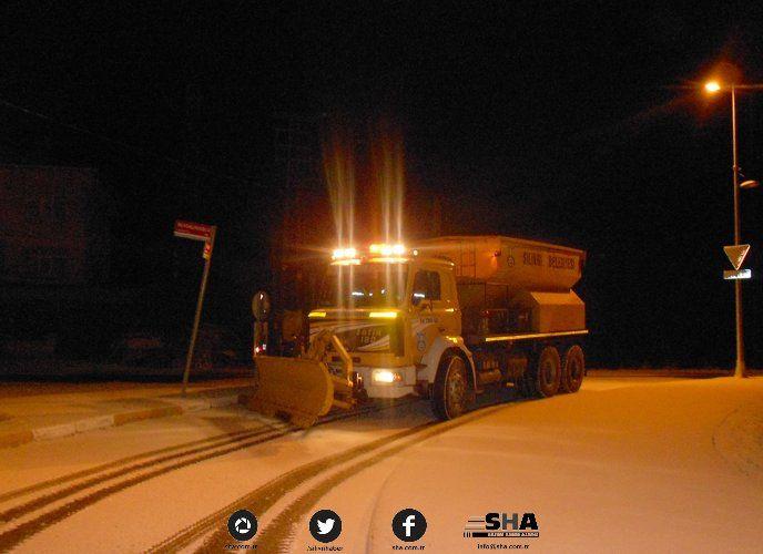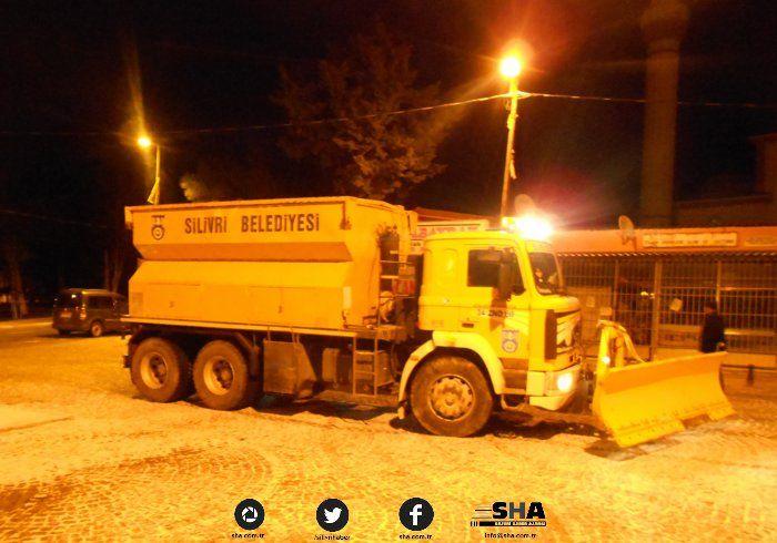 Silivri Belediyesi karla mücadele ekipleri Silivri'nin yüksek kesimlerinde etkisini gösteren kar yağışına karşı, kar küreme ve tuzlama çalışmalarını aralıksız sürdürüyor.