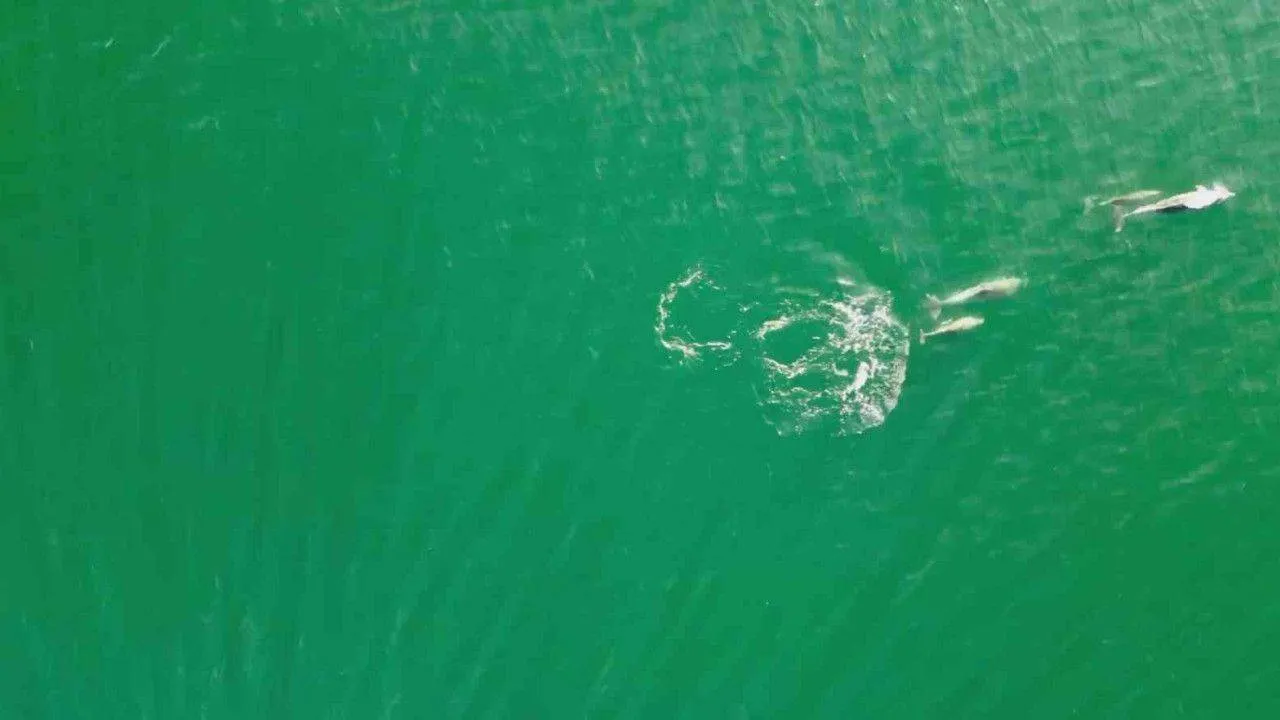 Yunuslar kendine hayran bırakırken, havadan çekilen görüntüler ise mest etti.