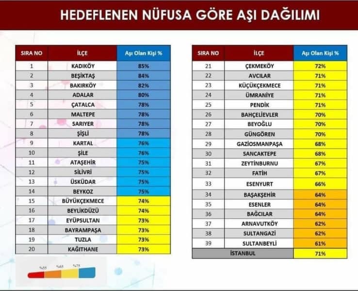 Silivri, koronavirüs tablosunda yüzde 75'lik aşılama oranıyla mavi kategoriye girdi.
