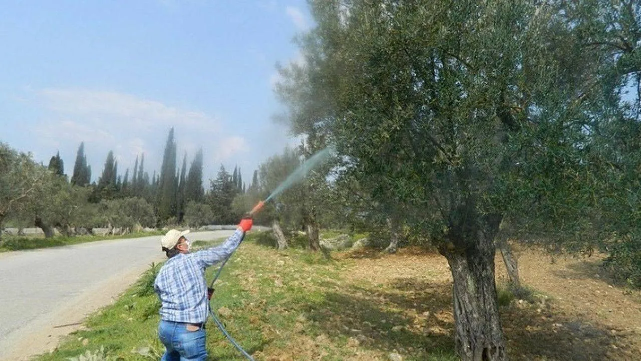 Balıkesir'in Havran ilçesinin özellikle ova ve taban kesimindeki zeytin ağaçlarında sıkça görülen ve yaprak dökümüne neden olan Zeytin Halkalı Leke Hastalığına karşı ilaçlama çalışmaları devam ediyor.