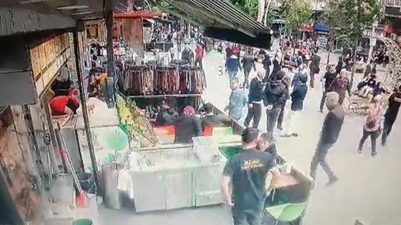 Çevrede bulunan bir iş yerinin güvenlik kamerasına yansıyan görüntülerde, kafede oturan saldırgan, husumetli olduğu kişiyi görünce el hareketiyle oturduğu yere doğru çağırıyor. Ardından belindeki silahı çıkarıp ateş ettikten sonra olay yerinden kaçıyor.