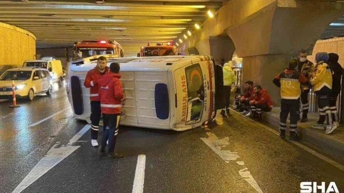 Zeytinburnu Topkapı alt geçitte ambulans devrildi