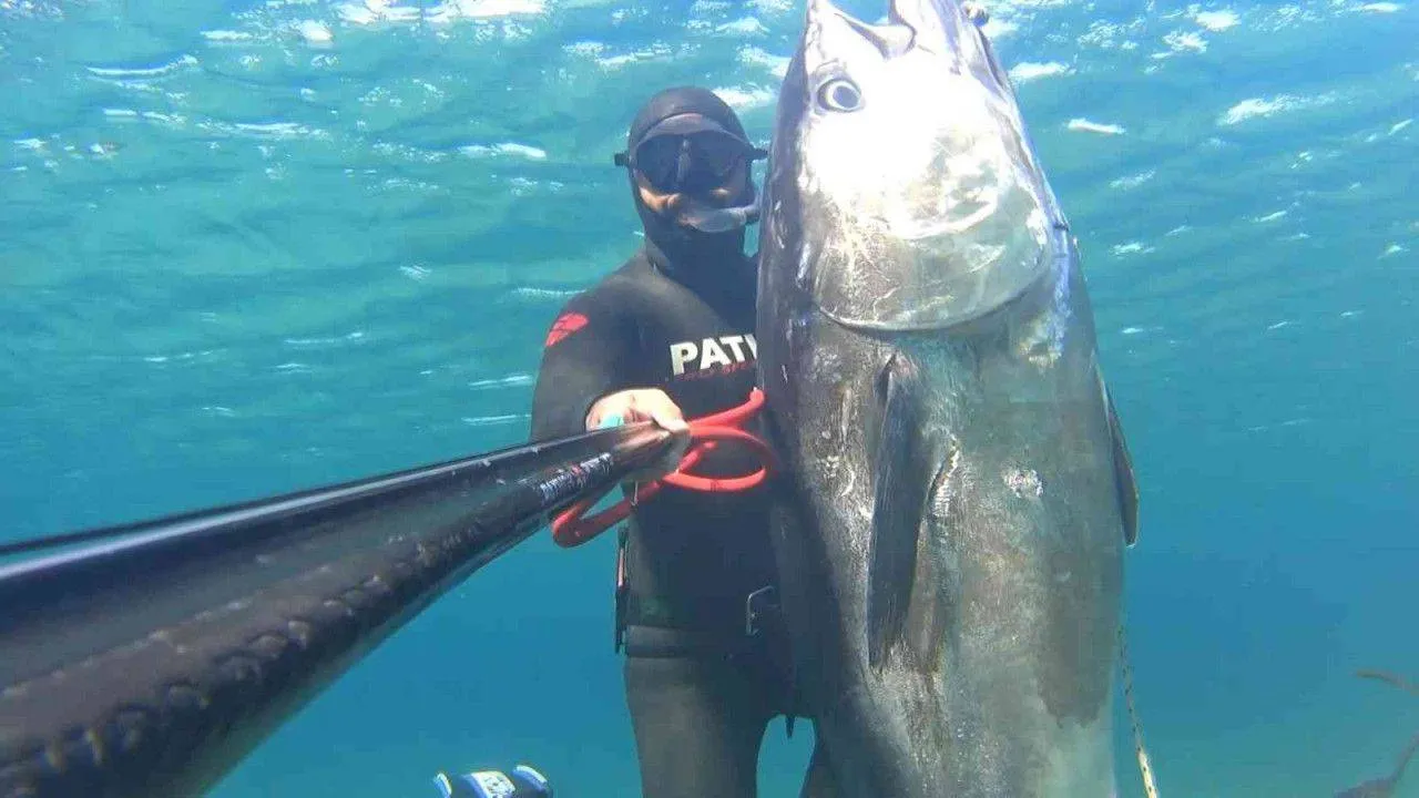 Çanakkale'de balık avı malzemeleri satan işyerinin sahibi ve zıpkınla balık avı milli takım sporcularından Ozan Önen, Çanakkale Boğazı açıklarında zıpkınla avlanırken yaklaşık 20 metre derinlikte 100 kilo üzerinde orkinos balığı avladı.