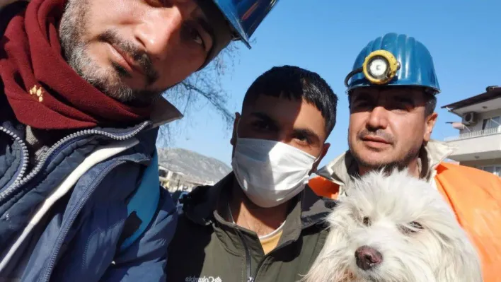 Zonguldaklı madenciler Hatay'da 203'üncü saatte, enkazdan 'Ponti' isimli köpeği kurtardı.
