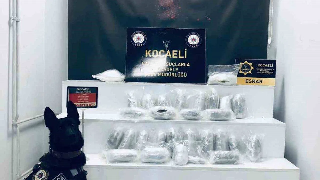 Kocaeli’de durdurulan araçta yapılan aramada 9 kilo 500 gram uyuşturucu madde ele geçirildi.